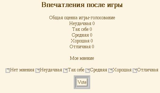 Раздел голосования по общей оценке игры , где Вы можете оценить игру , книга